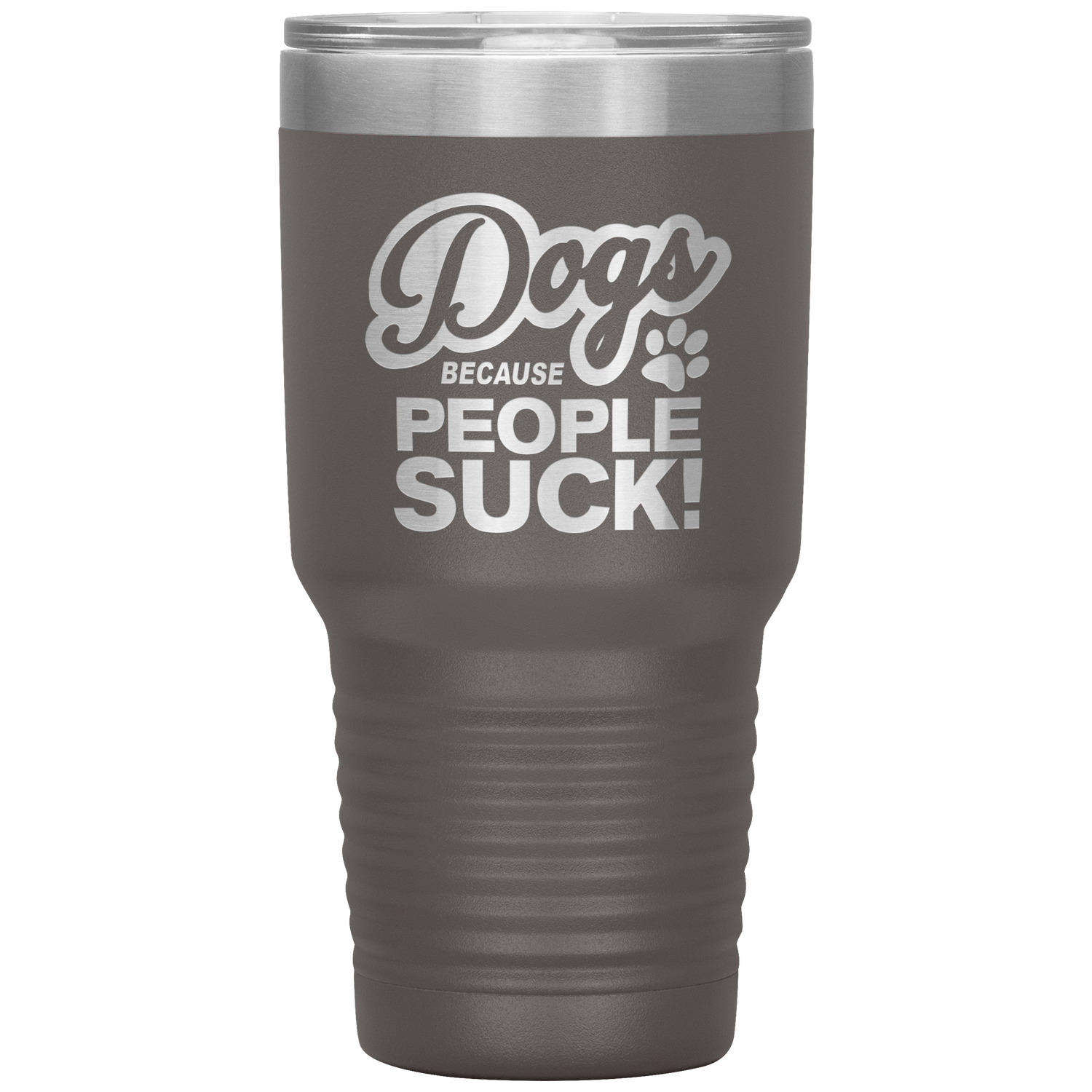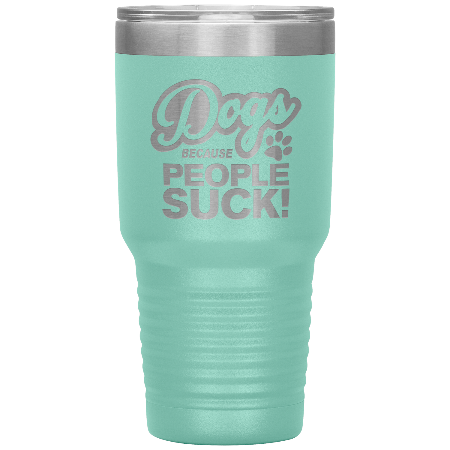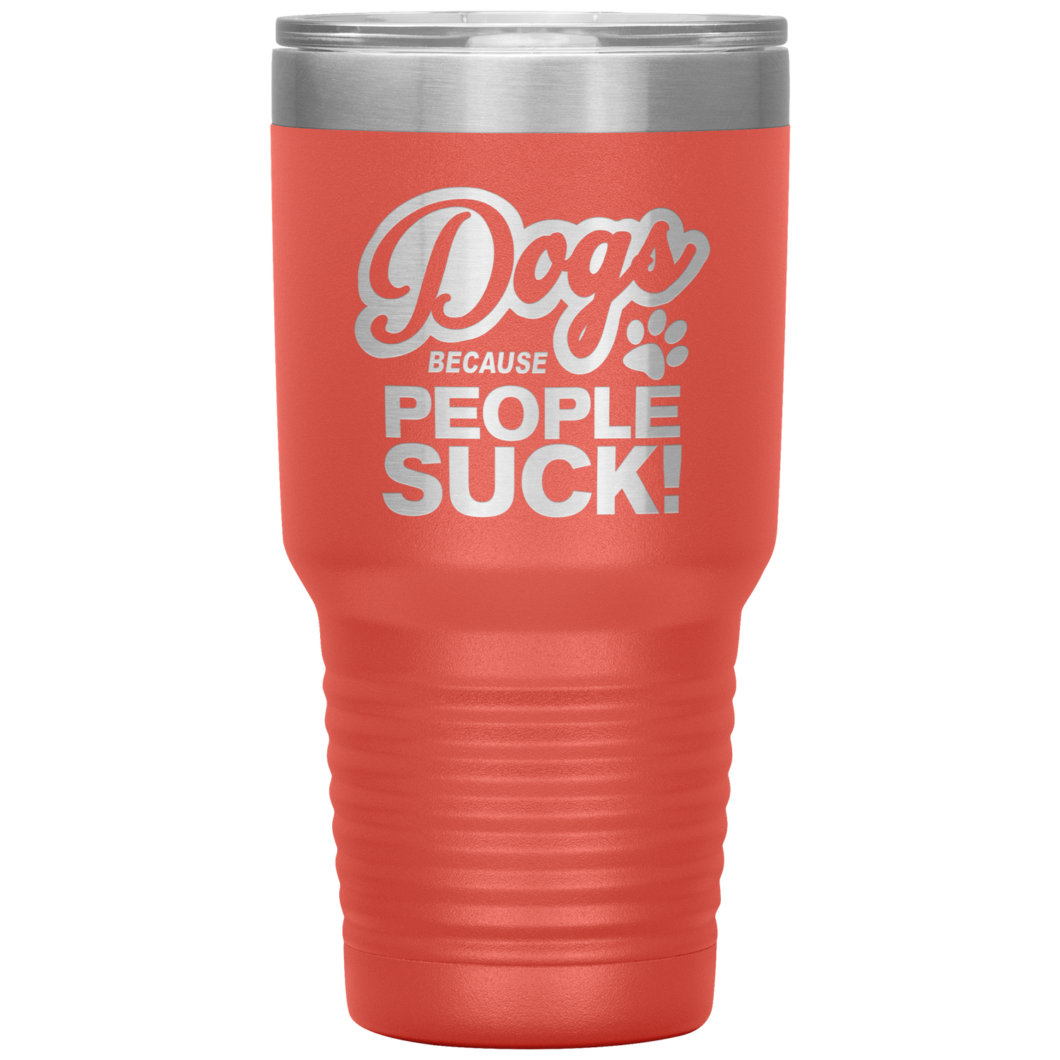 Dogs Because People Suck - Insulated Hot Cold Travel Coffee Tumbler 30oz, Funny Tumbler Gift