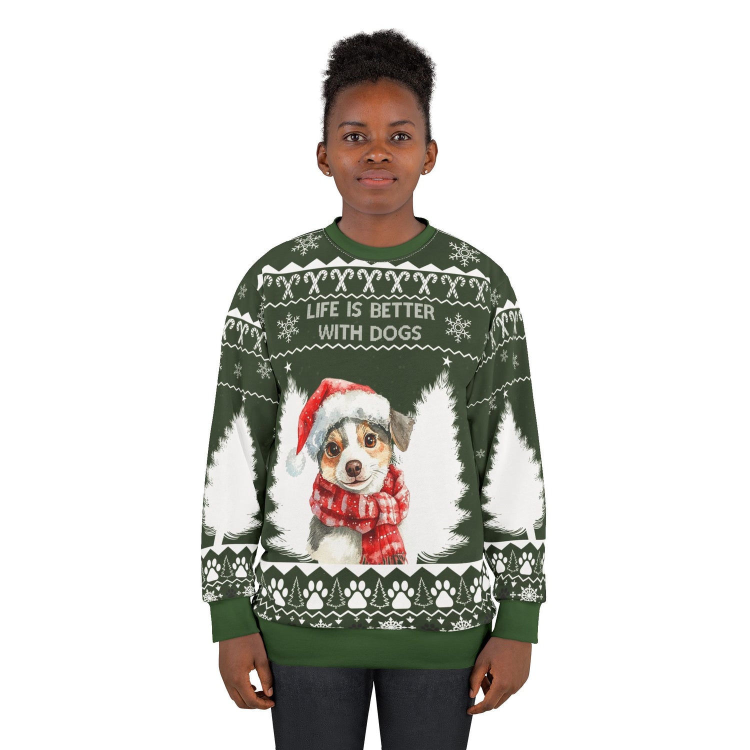 AOP Sweatshirt – Life Is Better With Dogs | Christmas Dog Lover Sweater !