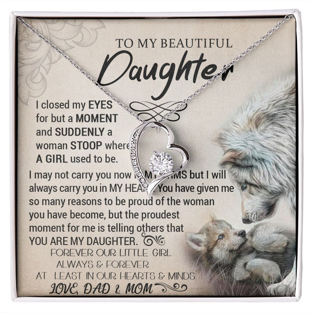 To My Daughter - Forever Love Heart Necklace (Wolves Design) (Jack- Personal)