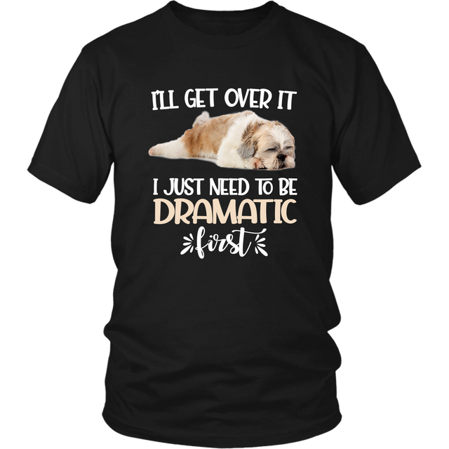 "I'll Get Over It I Just Need To Be Dramatic First" Shih Tzu Funny TShirt for All Shih Tzu Dog Lovers. A Must Have TShirt for that SHIH TZU Lover or Dog Lover to show off their Love for their Shih Tzu.