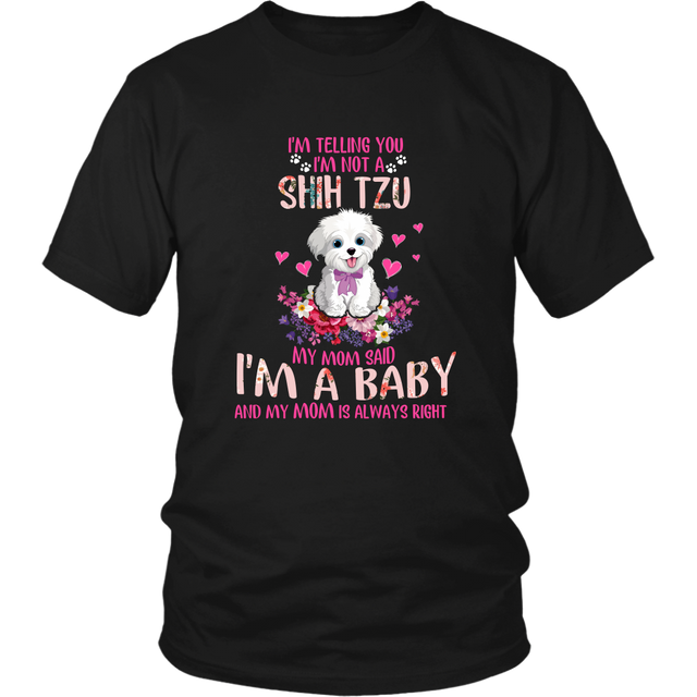 "Im Telling You Im Not a SHIH TZU My Mom Said Im a Baby and My Mom Is Always Right" Funny Shih Tzu TShirt for All Shih Tzu Dog Lovers.