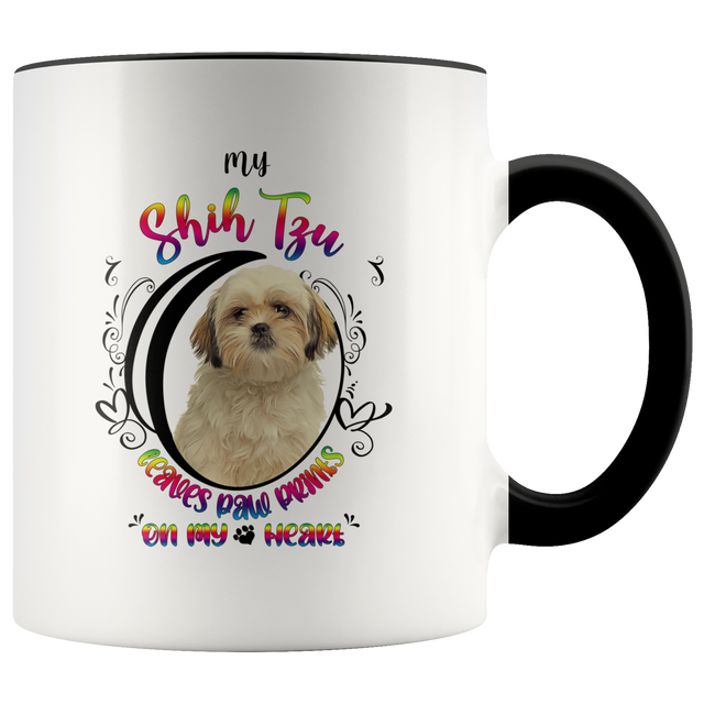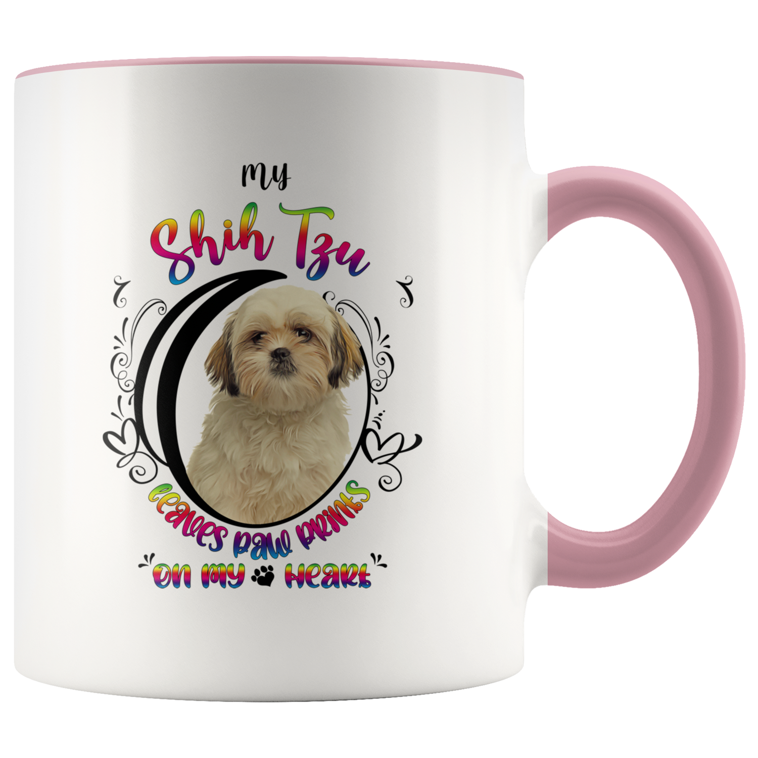 Shih Tzu Coffee Mug, My Shih Tzu Leaves Paw Prints On My Heart Shih Tzu 2-Toned Ceramic Coffee Mug is a MUST HAVE for that Home or Office, and for all Shih Tzu Lovers, Dog Lovers, and And anyone Looking for a Fun Coffee Mug to have their Morning Coffee in ;)