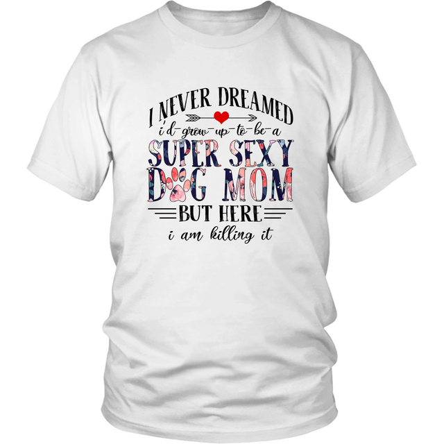 "I Never Dreamed I'd Grow Up To Be A Super Sexy Dog Mom But Here I am Killing It" Funny Dog Tshirt for Dog Lovers. A Must Have for that Dog Lover Mom!